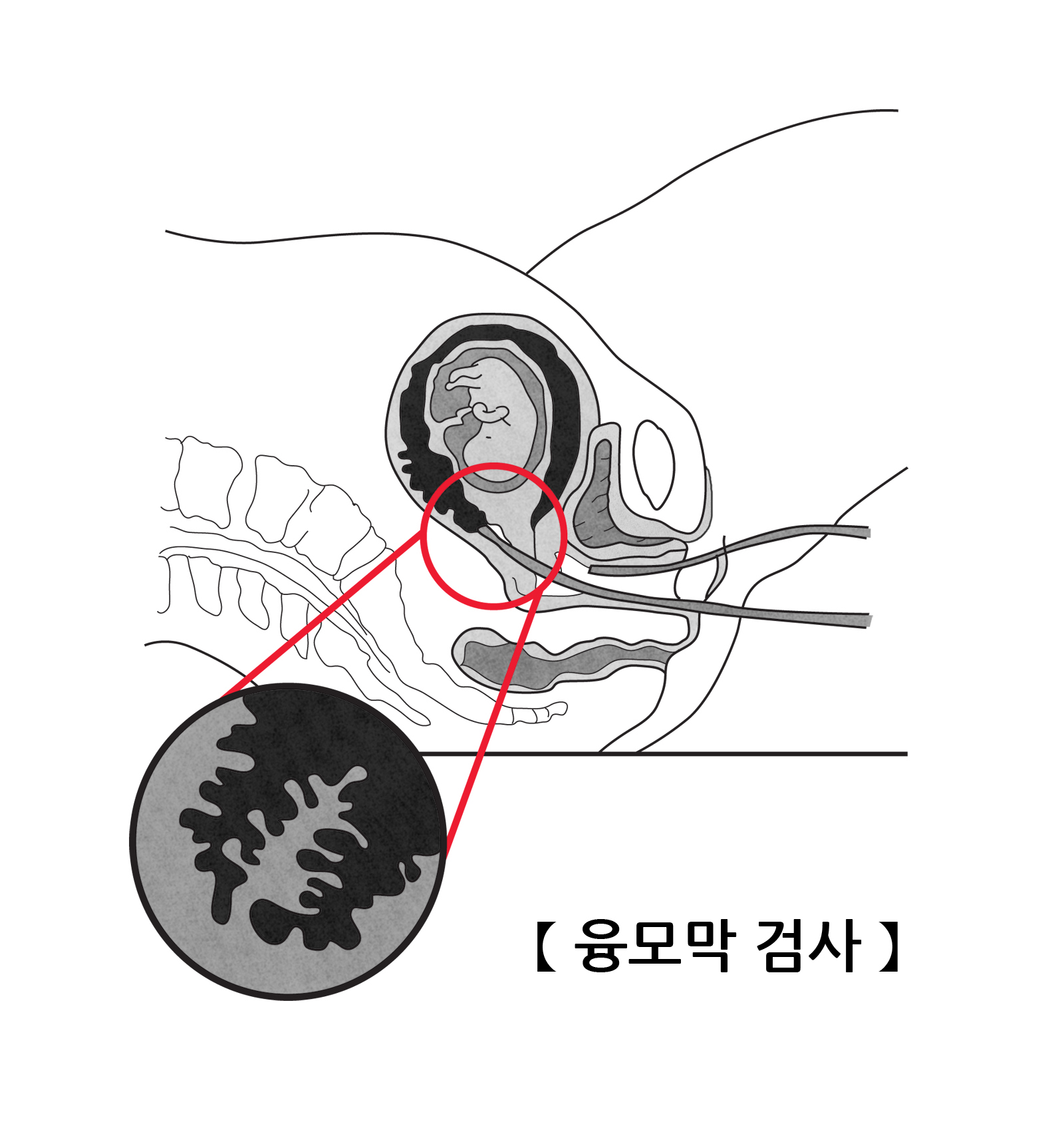임신 9~12주 사이에 초음파 검사를 이용해 태아와 태반의 위치를 확인한 후 자궁 경부를 통해 융모막을 일부 떼어내 검사합니다. 채취한 융모막을 염색체 핵형을 진단하고, 태아의 기형여부를 알아볼 수 있습니다.