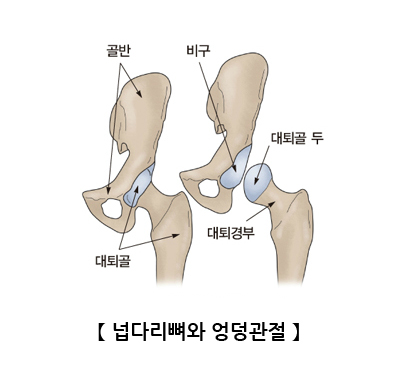 골반과 엉덩관절을 통해 전달되는 체중을 지지하고, 다리가 움직이는 작용을 합니다.