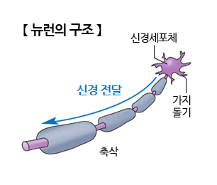 신경계를 구성하는 주요 세포로 감각뉴런은 척수와 뇌에게 신경흥분을 전달하고 운동뉴런은 뇌나 척수에서 내린 명령을 근육이나 선조직으로 전달합니다. 뉴런은 1개의 축삭과 1~2개이상의 수상돌기로 이루어져 있으며 뉴런과 뉴런을 연결하는 시냅스라는 구조를 통해 신호를 주고 받아 다양한 정보를 받아들이고 저장하는 기능을 합니다.