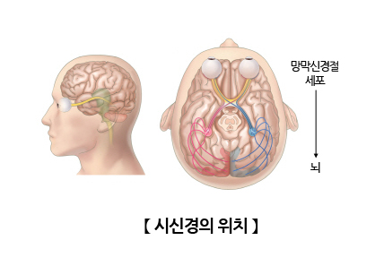 위치망막신경절 세포에서 안구의 뒷부분을 지나 뇌로 이어져 있습니다.