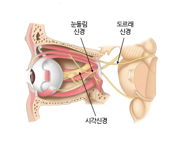 도르래신경은 완전한 운동신경으로, 안구의 외측 눈 근육인 상사근을 조절하여 안구를 안쪽으로 회전시키고 아래 바깥쪽으로 움직이는 역할을 합니다. 도르래신경이 손상되는 경우 안구를 외측으로 움직일 때 복시 또는 사시가 나타납니다.