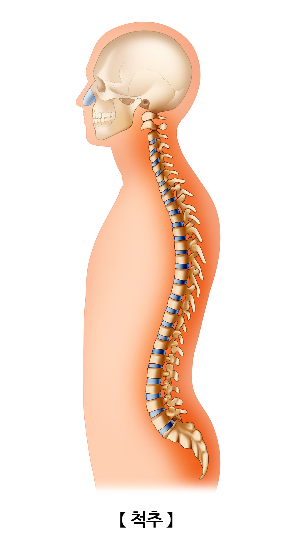 척추는 몸의 중심을 이루고 기둥의 역할을 수행하는 기관으로 우리 몸은 33개의 척추뼈로 구성되어 있습니다.