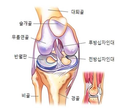 슬관절은 대퇴골의 하단과 경골의 상단 및 슬개골의 후면, 세부분의 뼈 사이에 있는 관절을 말합니다.