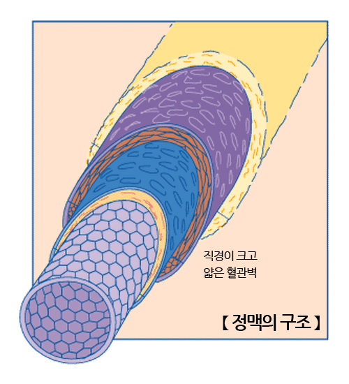 정맥은 동맥과 다른 기능을 함으로써 정맥만의 특징적인 형태를 가지고 있습니다. 정맥은 비교적 심장으로부터 멀리 떨어져있고 압력이 낮은 혈액이 흐르므로 벽이 얇고 직경이 크며, 혈액의 역류를 방지하기 위한 판막이 혈관 내에 존재합니다.