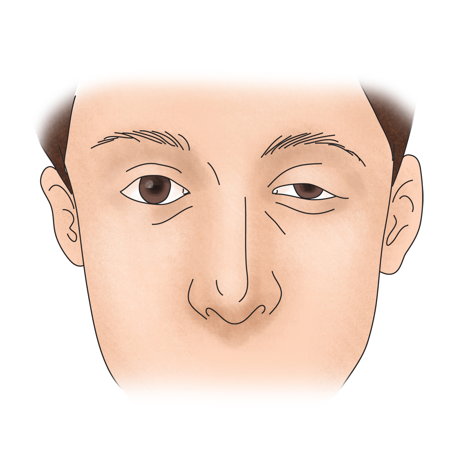 안검하수는 눈꺼풀을 올리는 근육에 문제가 생겨 윗눈꺼풀이 처지고 눈이 작은 상태를 말합니다. 안검하수 환자는 대체로 눈을 뜨기 위해 이마에 힘을 주어 눈꺼풀을 들어 올리므로, 이마에 주름이 있는 것이 특징입니다. 안검하수는 선천적이거나 후천적인 여러 가지 원인에 의해 발생합니다. 한쪽 눈에만 생기는 경우도 있습니다.