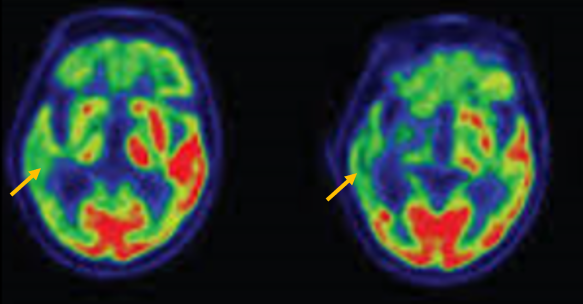 [루이소체치매 환자의 뇌포도당 양전자 단층촬영에서 확인되는 비대칭적인 대사 기능 저하]