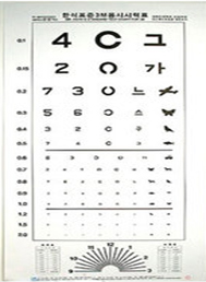 1. 시력검사표 앞에 6m정도 떨어진 거리에 서서 검사자의 지시에 따라 한쪽 눈을 가리고 진행합니다.