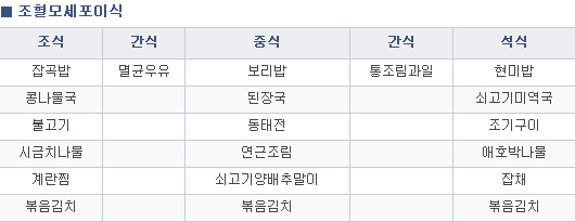 1. 곡류, 어육류, 채소류, 과일류, 우유류를 고루 섭취합니다.