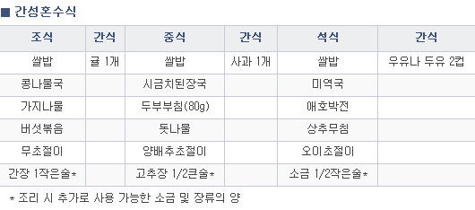 4. 탈수 증세가 오지 않도록 권장량 정도의 식사 섭취를 유지합니다.