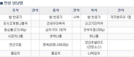 식빵, 쇠고기, 돼지고기 살코기, 껍질벗긴 닭고기, 가자미, 새우, 두부, 저지방 우유, 신선한 과일 등
