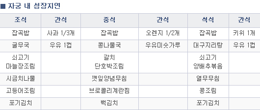 3. 다양한 채소군과 과일군을 선택하여 비타민과 무기질을 충분히 섭취합니다.